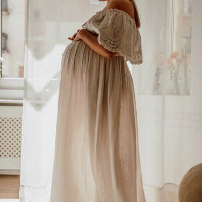 Sukienka lekko prześwituje, wymaga cielistej bielizny.Czy to jest sukienka ciążowa? Tak.